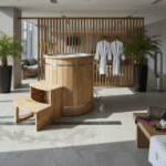 A barrel ice bath finished in Thermo New Zealand Knotless Spruce — a clean, uniform timber with a smooth grain and no visible knots. The heat-treated spruce provides enhanced dimensional stability and moisture resistance compared to untreated softwoods, making it a durable choice for Thailand's climate.