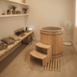 Inside, 304 stainless steel provides a hygienic, corrosion-resistant basin that cleans easily between sessions. Outside, the Thermo Pine barrel has a warm, natural appearance with visible grain that develops character over time.