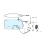 A: Yes. It connects directly to tubs with inlet and outlet ports via the included hoses. For tubs without ports, use the over-the-rim hose method — instructions are included in the user manual and our installation guide above.