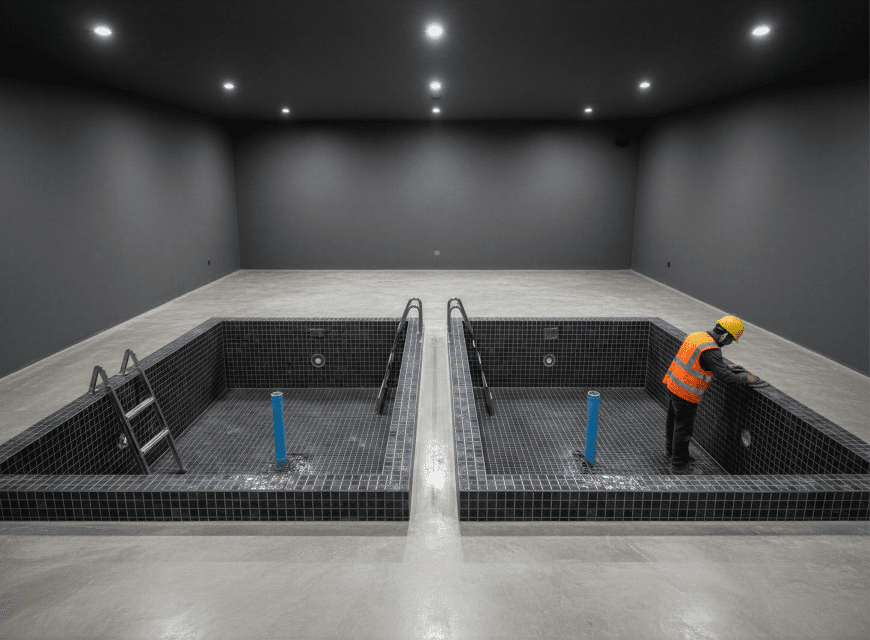 A: Yes. A small plunge pool can be built adjacent to your main swimming pool, sharing some infrastructure but with its own independent chiller and circulation system. This gives you the best of both worlds — a full-size pool for swimming and a dedicated cold plunge for recovery.