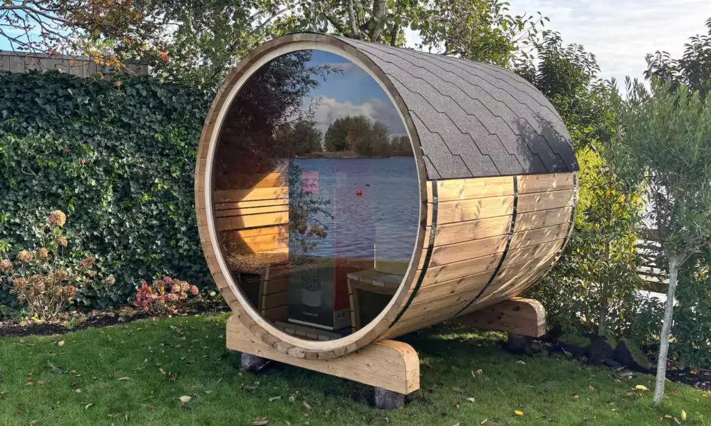 Choose from four back-end configurations. The 1/2 Window offers a curved acrylic panel that floods the interior with natural light while maintaining a traditional sauna feel. The Full Flat Window maximises your view with a large flat glass panel. The Full Curved Panoramic Window provides the most expansive visual experience, wrapping around the barrel’s curve for stunning 180-degree views. No Window gives a fully enclosed traditional barrel sauna experience with maximum heat retention.