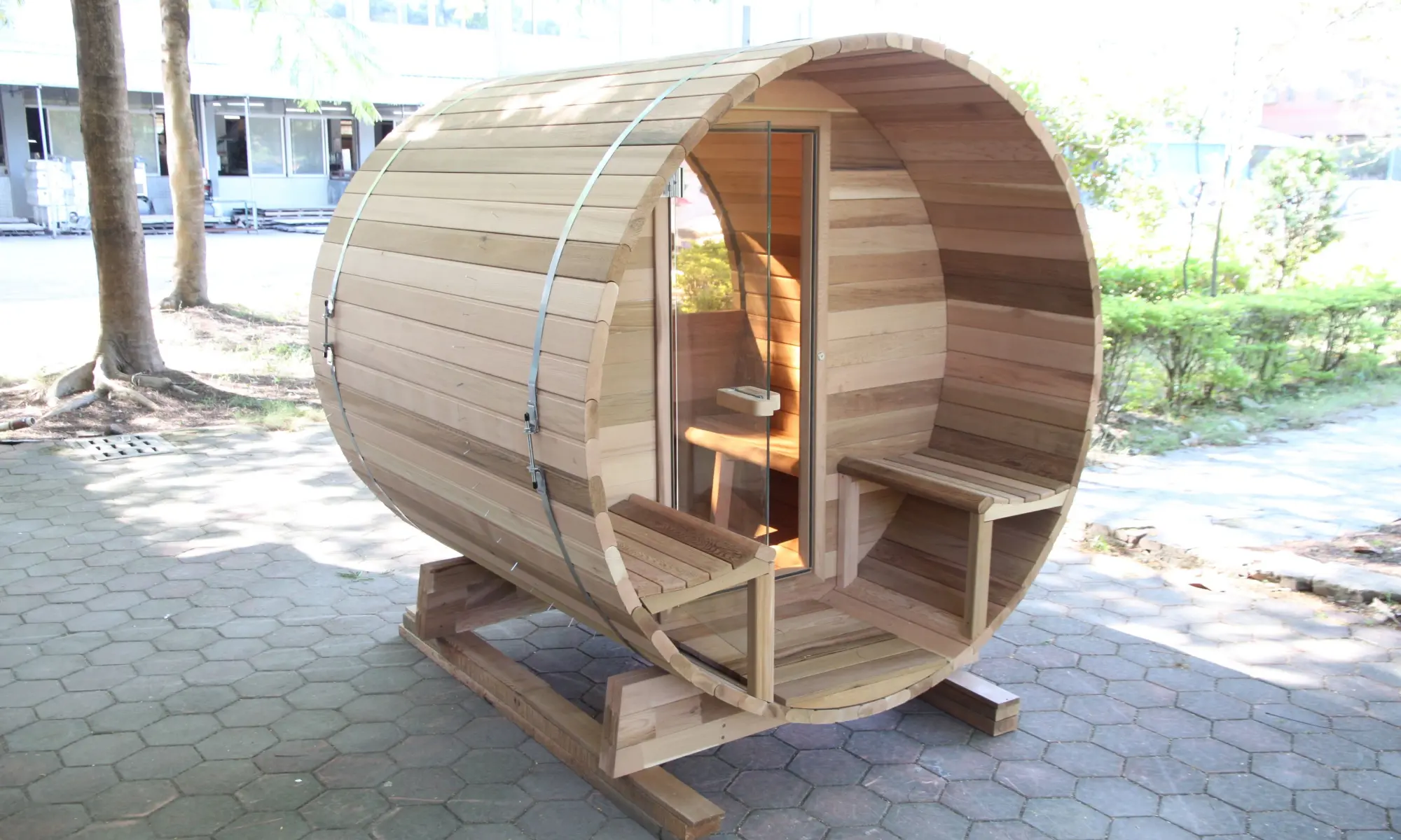 Experience authentic sauna relaxation with this 180 x 180cm traditional barrel sauna. Choose from four quality timber options – Spliced Red Cedar (Premium), Thermo Pine, Hemlock, or Spruce – with 38mm-thick walls that provide excellent heat retention and natural weather resistance for Thailand’s tropical climate.