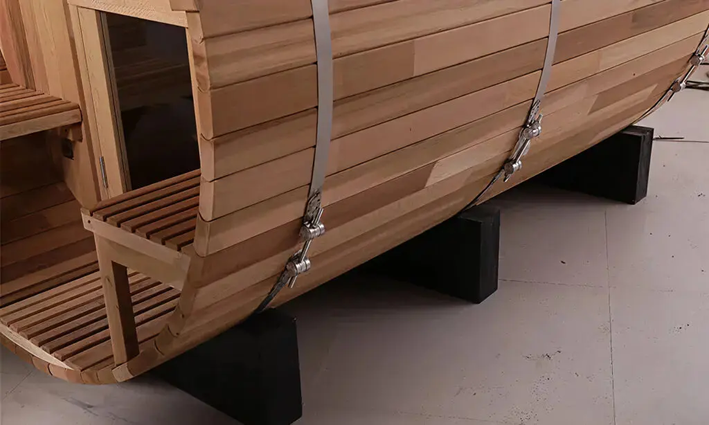 Every barrel sauna comes complete with: Box Stone Heater (TÜV Safety Certified), explosion-proof stones, explosion-proof interior light, wooden bucket and water scoop, temperature gauge, sand timer, wooden door handle, 8mm transparent tempered glass door, rubber hammer for assembly, asphalt roof shingles, and Installation Manual (English). Everything you need to get started is in the kit.