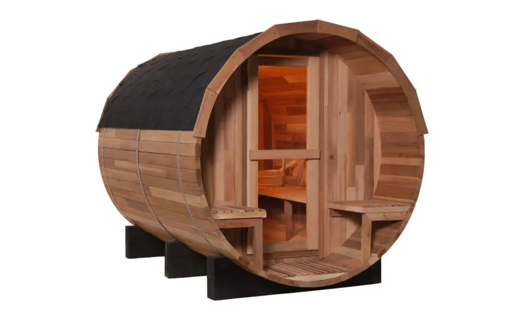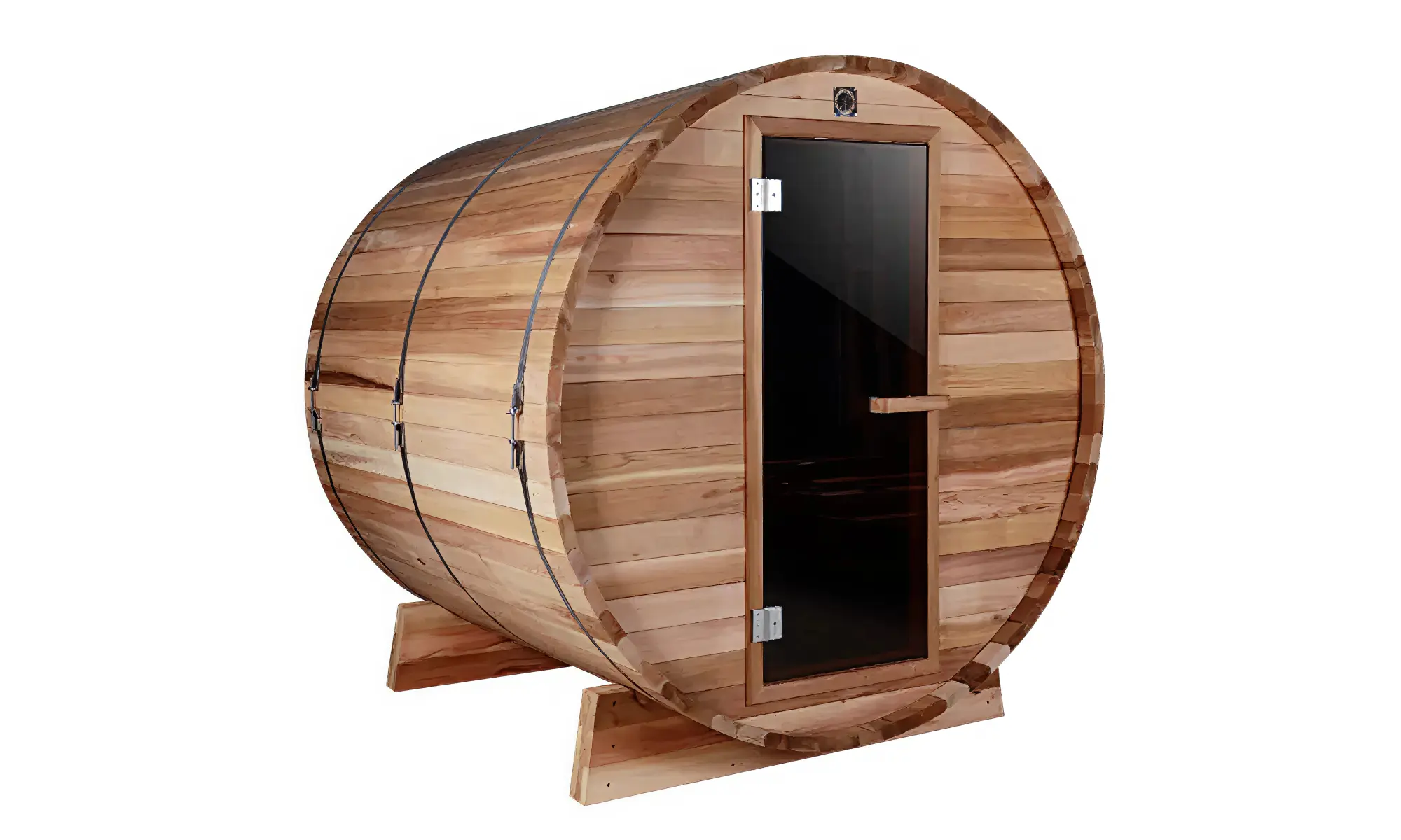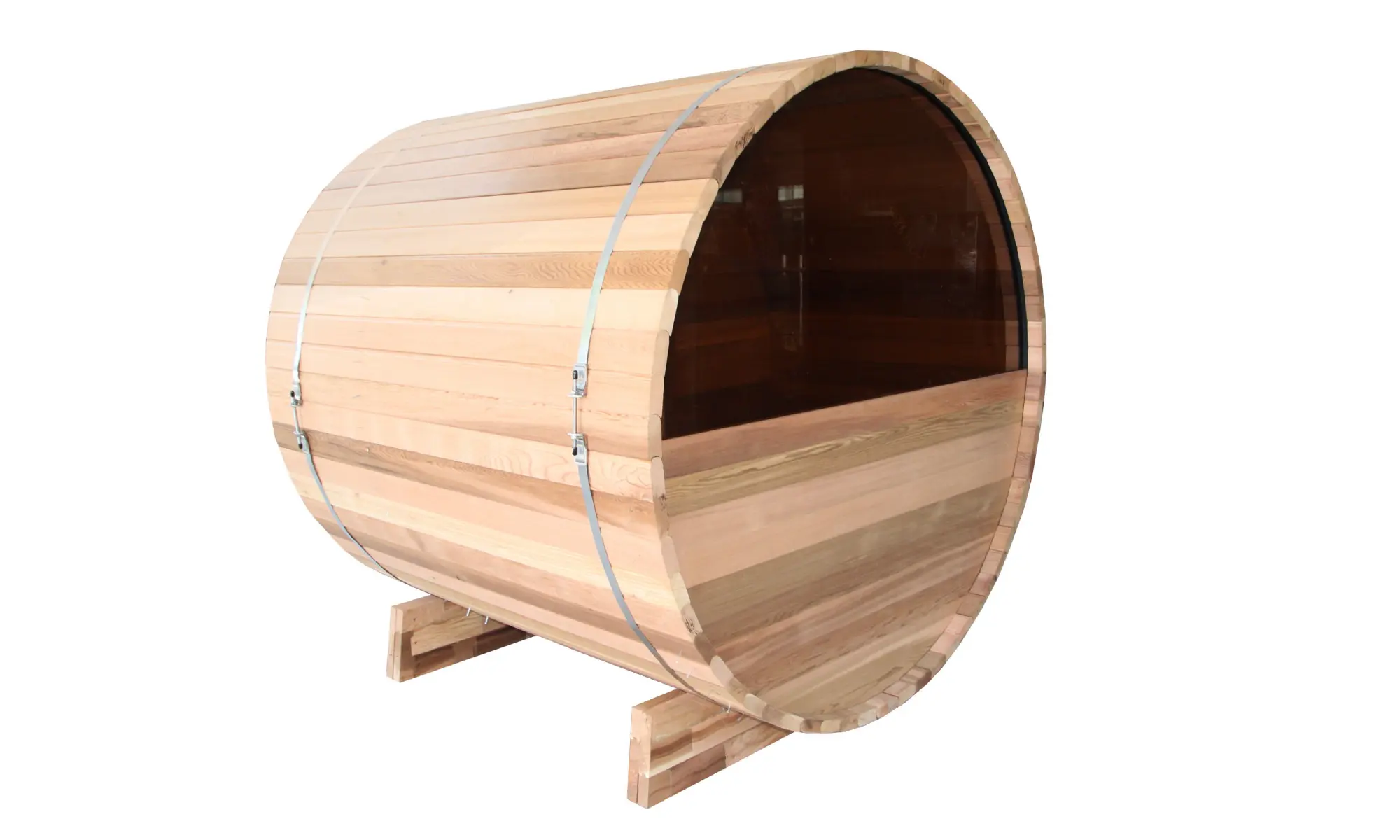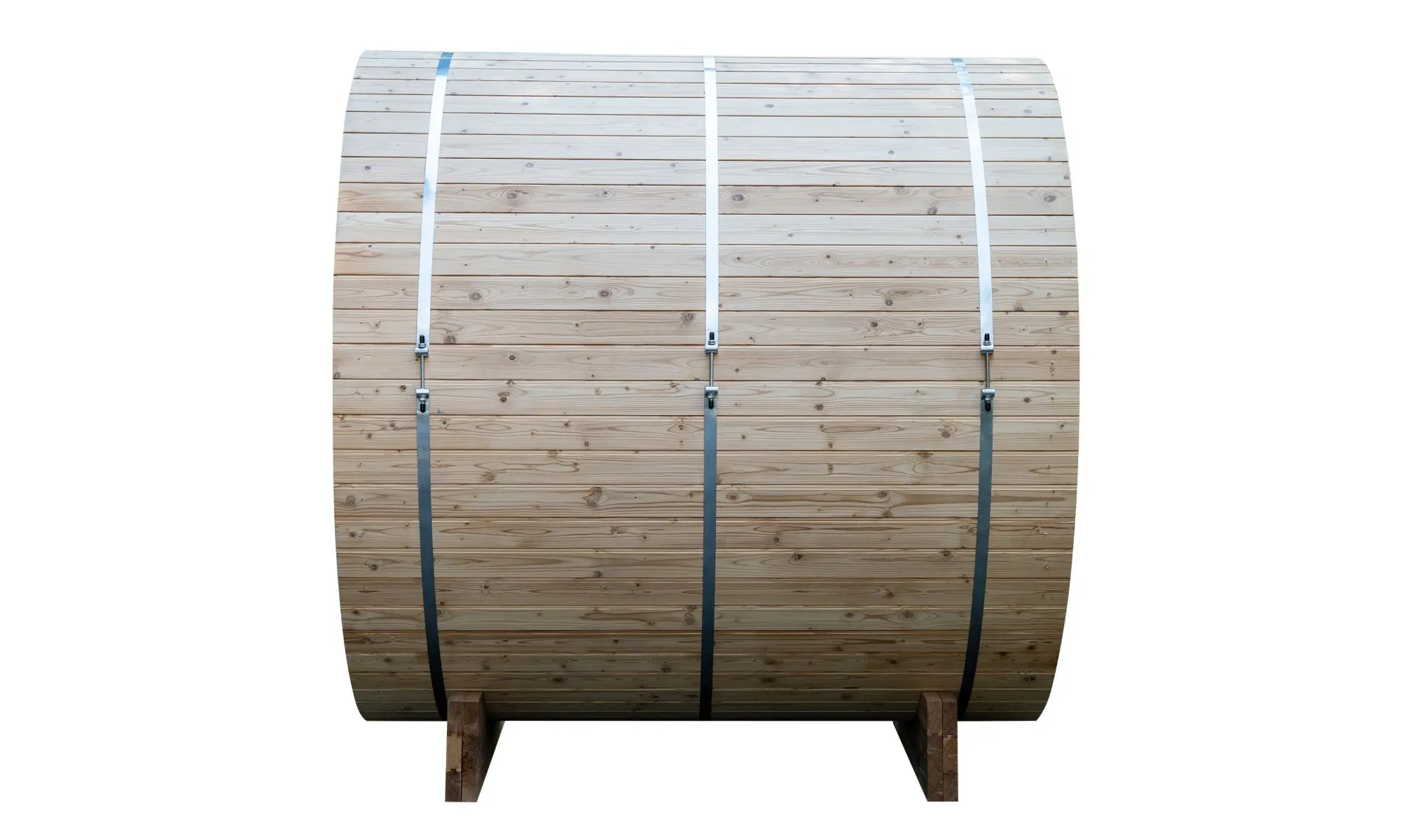 The generous interior comfortably seats 6 to 8 people, making it ideal for entertaining guests, wellness retreats, or hospitality venues. The classic barrel shape ensures efficient heat circulation and even temperature distribution throughout the larger space.