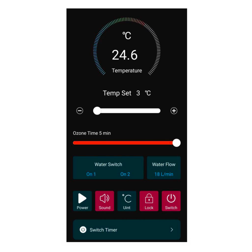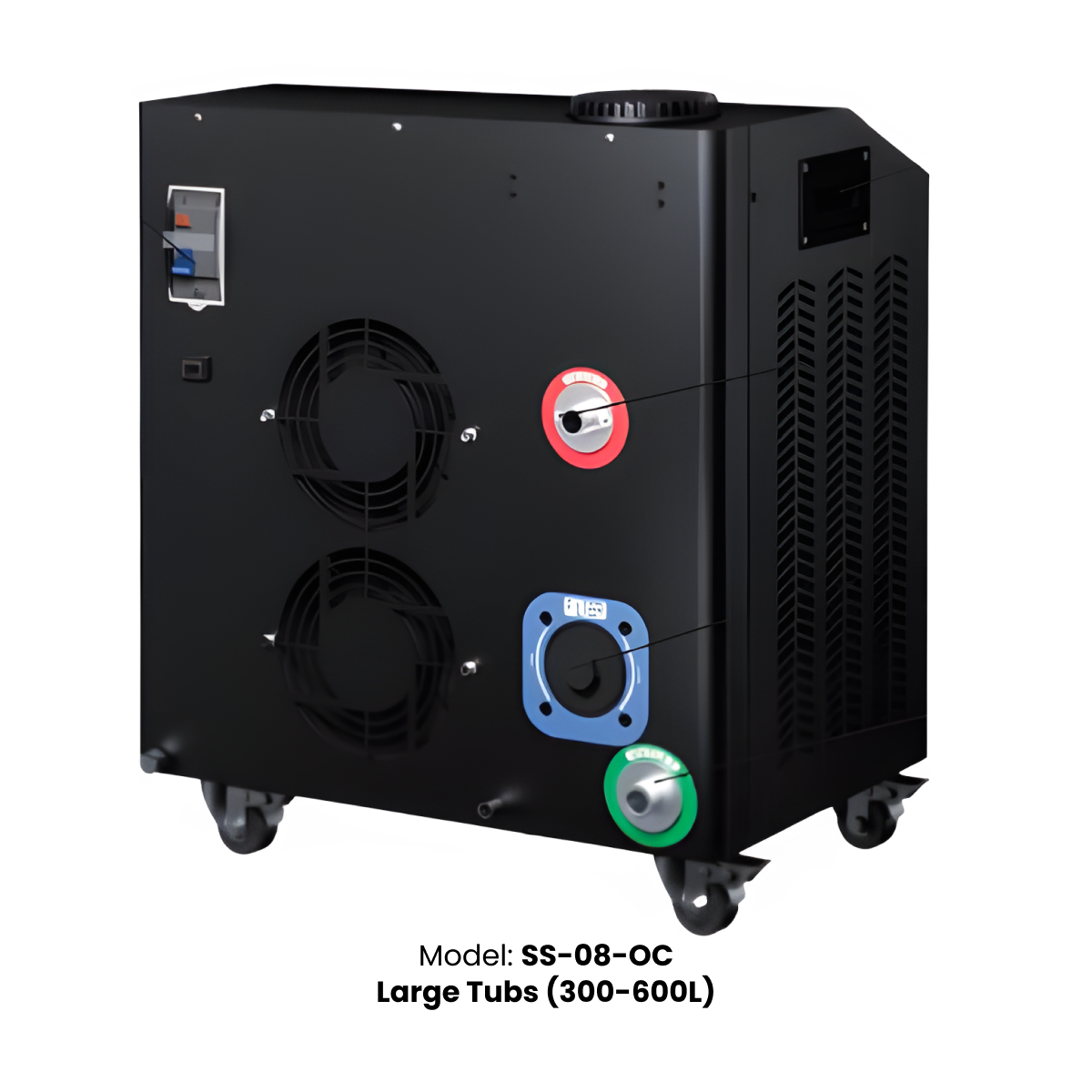 - Electric chiller sizes available: 0.8HP, 1.0HP, and 2.0HP for tubs from 200L to commercial setups. Precise temperature control from 3°C (37°F) to 42°C via touch panel or WiFi smartphone control with free Tuya Smart app (iOS and Android)