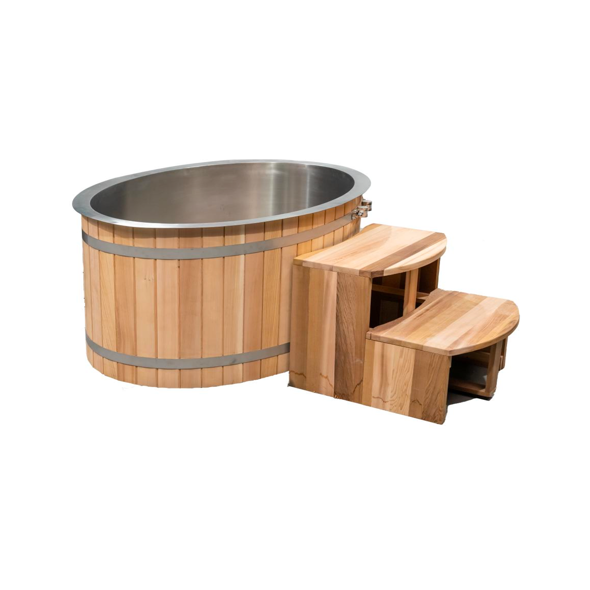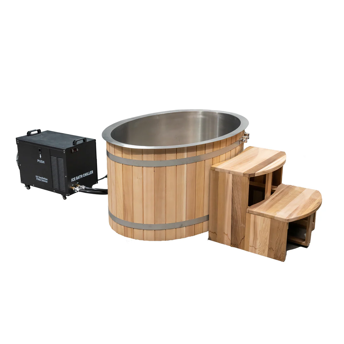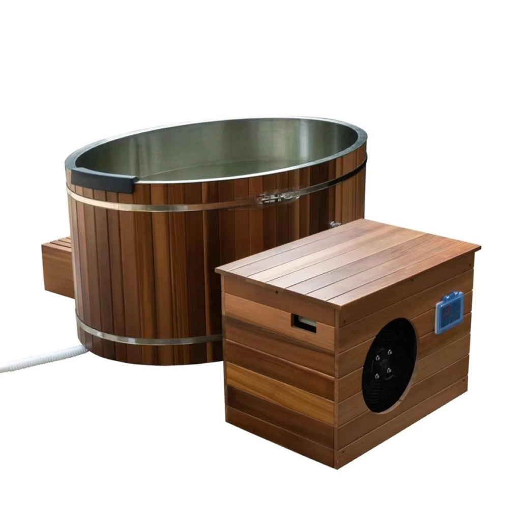 The Sanuk Oval Ice Bath combines beautiful Red Cedar craftsmanship with a hygienic stainless steel interior. This premium cold plunge tub is built to last, designed for daily use, and stunning enough to be a centrepiece in any garden or wellness space.