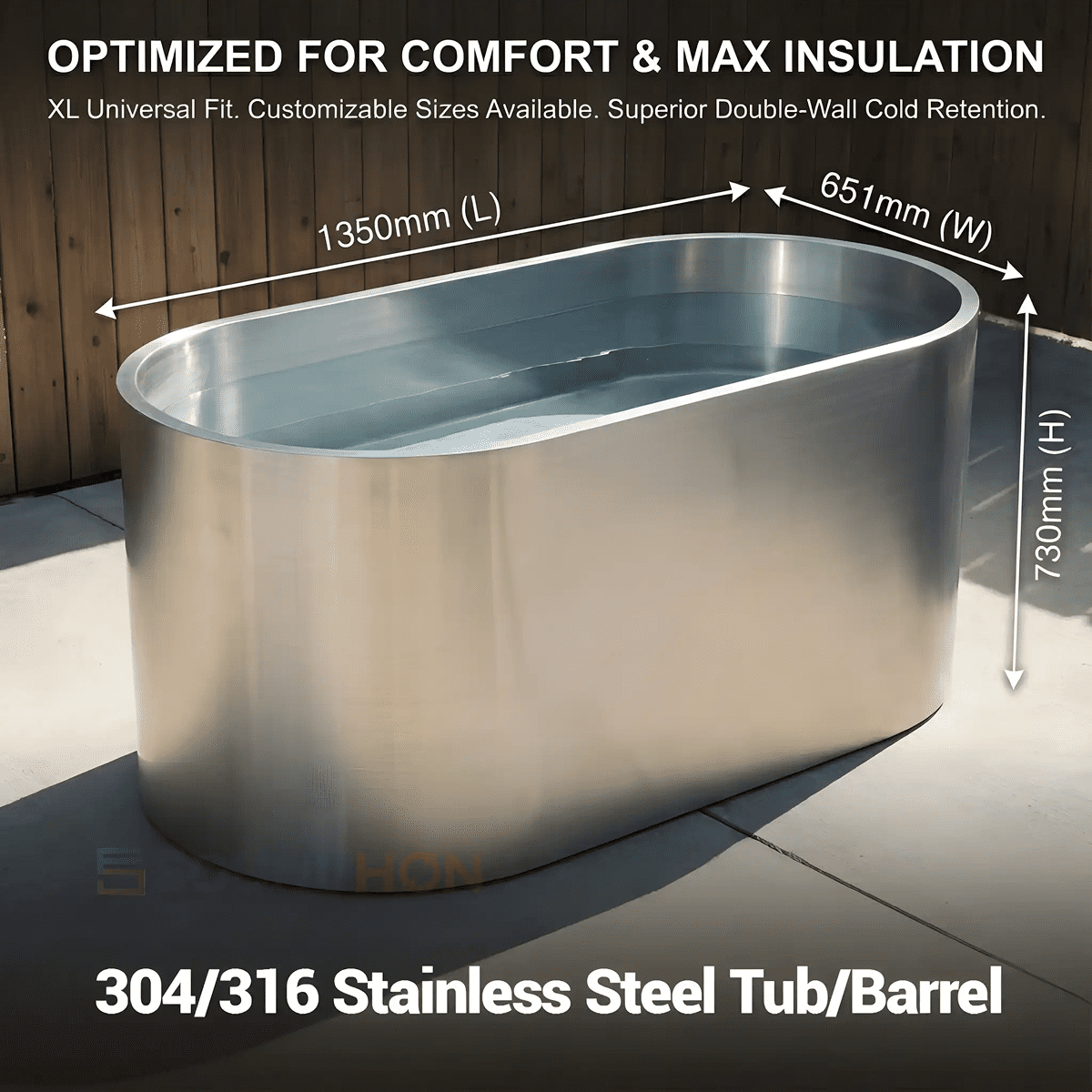 The “Ngein” Stainless Steel Ice Bath Tub is built for those who want their ice bath to last a lifetime. Constructed entirely from marine-grade 304/316 stainless steel — the same material used in boat fittings and coastal infrastructure — this tub won’t rust, corrode, or degrade, regardless of how many years it spends outdoors in Thailand’s humidity.