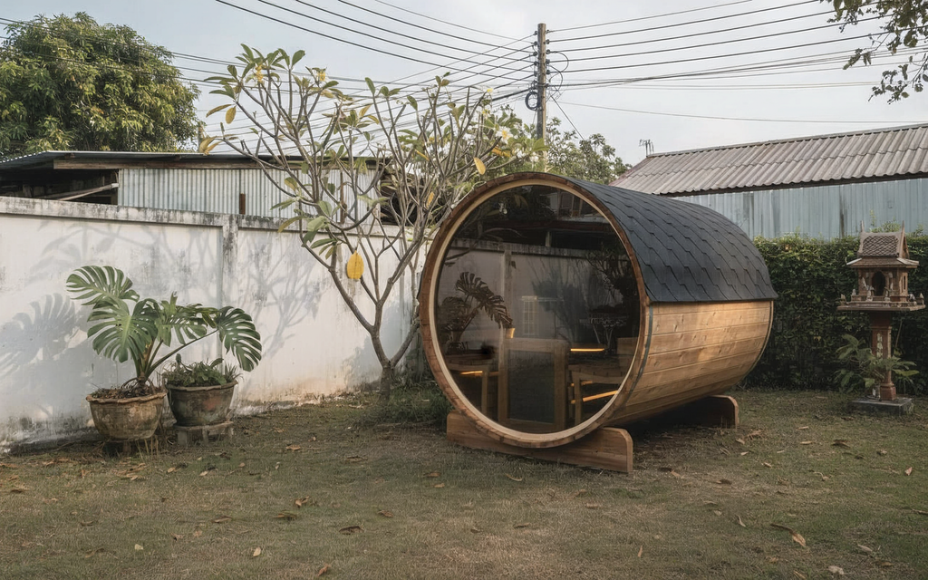 A: Electric heaters typically cost ฿400-800 monthly for regular use (3-4 sessions weekly). Barrel saunas generally heat faster and retain warmth efficiently due to the curved design, often using less energy than equivalent rectangular cabins.